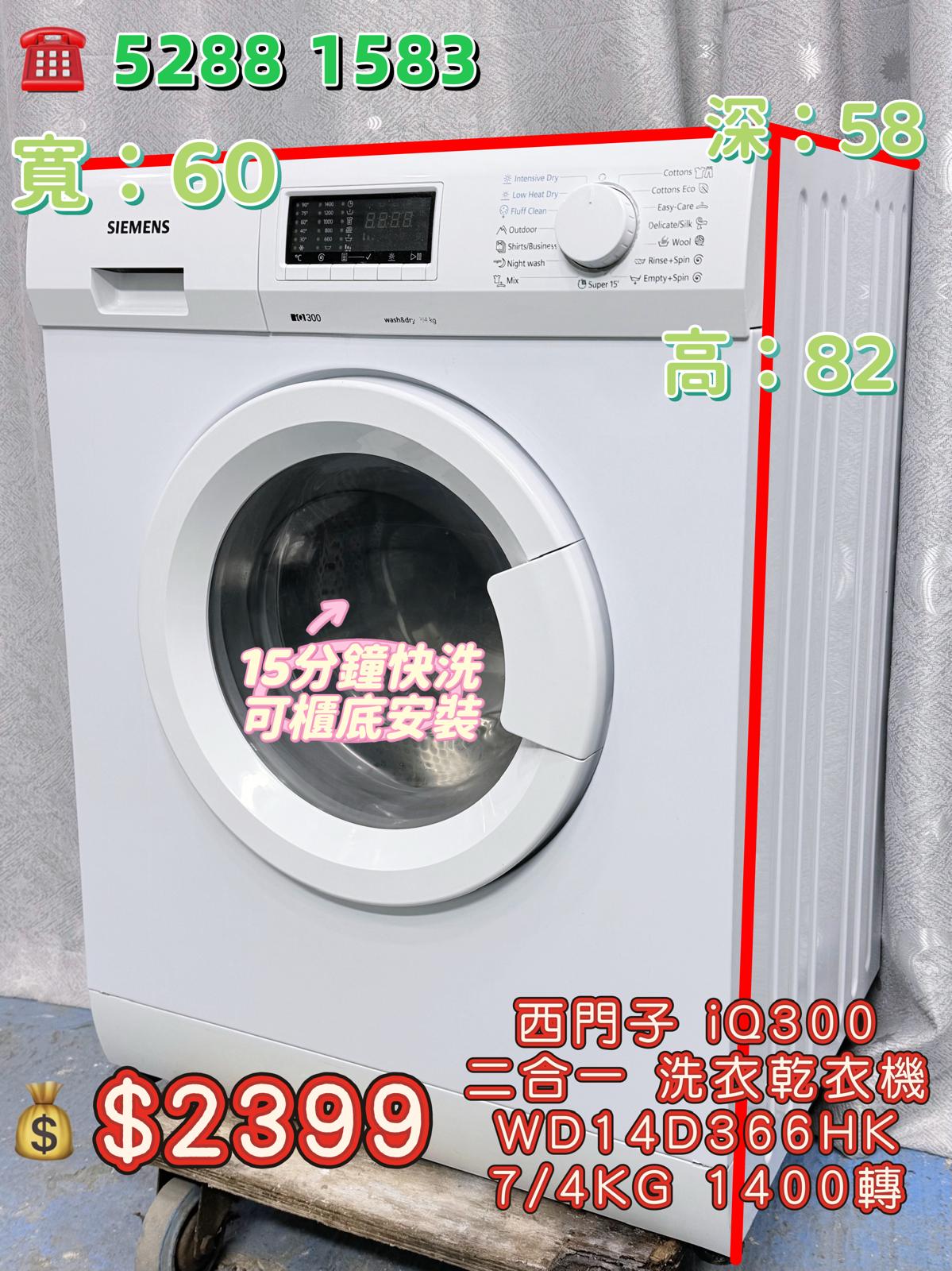 本週優惠 ♻️西門子 iQ500 WD15G421HK♻️ 8/5KG 1500轉 前置式二合一洗衣乾衣機 九成新 包送貨安裝 有保用期 可貨到付款 信用卡付款 1,999.00 HKD 0.00 HKD