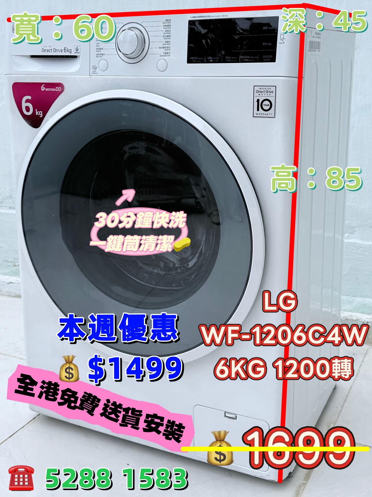 本週優惠 ♻️LG WF-1206C4W♻️ 6KG 1200轉 前置式洗衣機 九成五新 包送貨安裝 有保用期 可貨到付款 信用卡付款