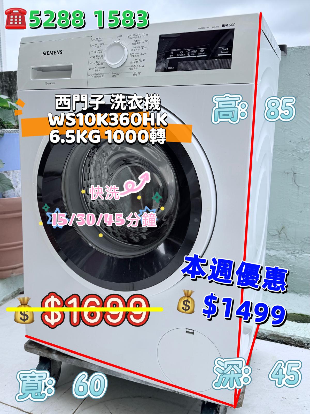 本週優惠 ♻️西門子 iQ500 WS10K360HK♻️ 6.5KG 1000轉 纖巧型前置式洗衣機 九成新 包送貨安裝 有保用期 可貨到付款 信用卡付款