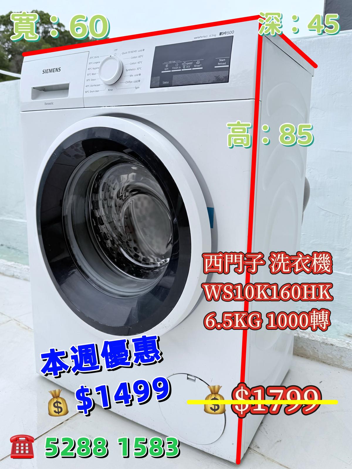 本週優惠 ♻️西門子 iQ500 WS10K160HK♻️ 6.5KG 1000轉 纖巧型前置式洗衣機 九成新 包送貨安裝 有保用期 可貨到付款 信用卡付款