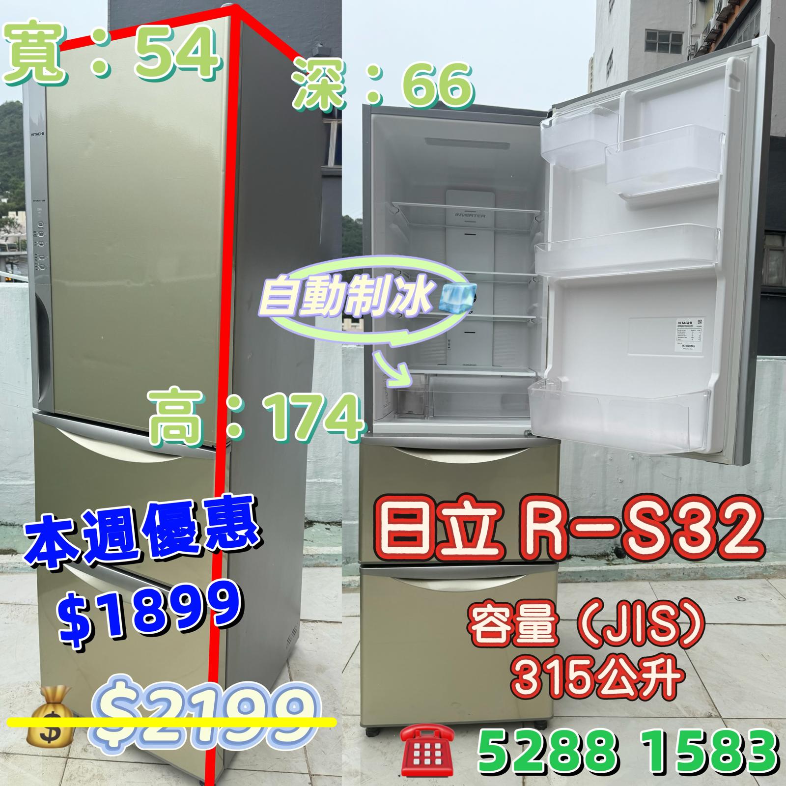 本週優惠 ❄️日立 Hitachi R-SG37B 玻璃面❄️ 三門雪櫃 可自動製冰 即買即用 365公升 182cm高 九成五新 包送貨安裝 有保用期 可貨到付款 信用卡付款 1,999.00 HKD 0.00 HKD