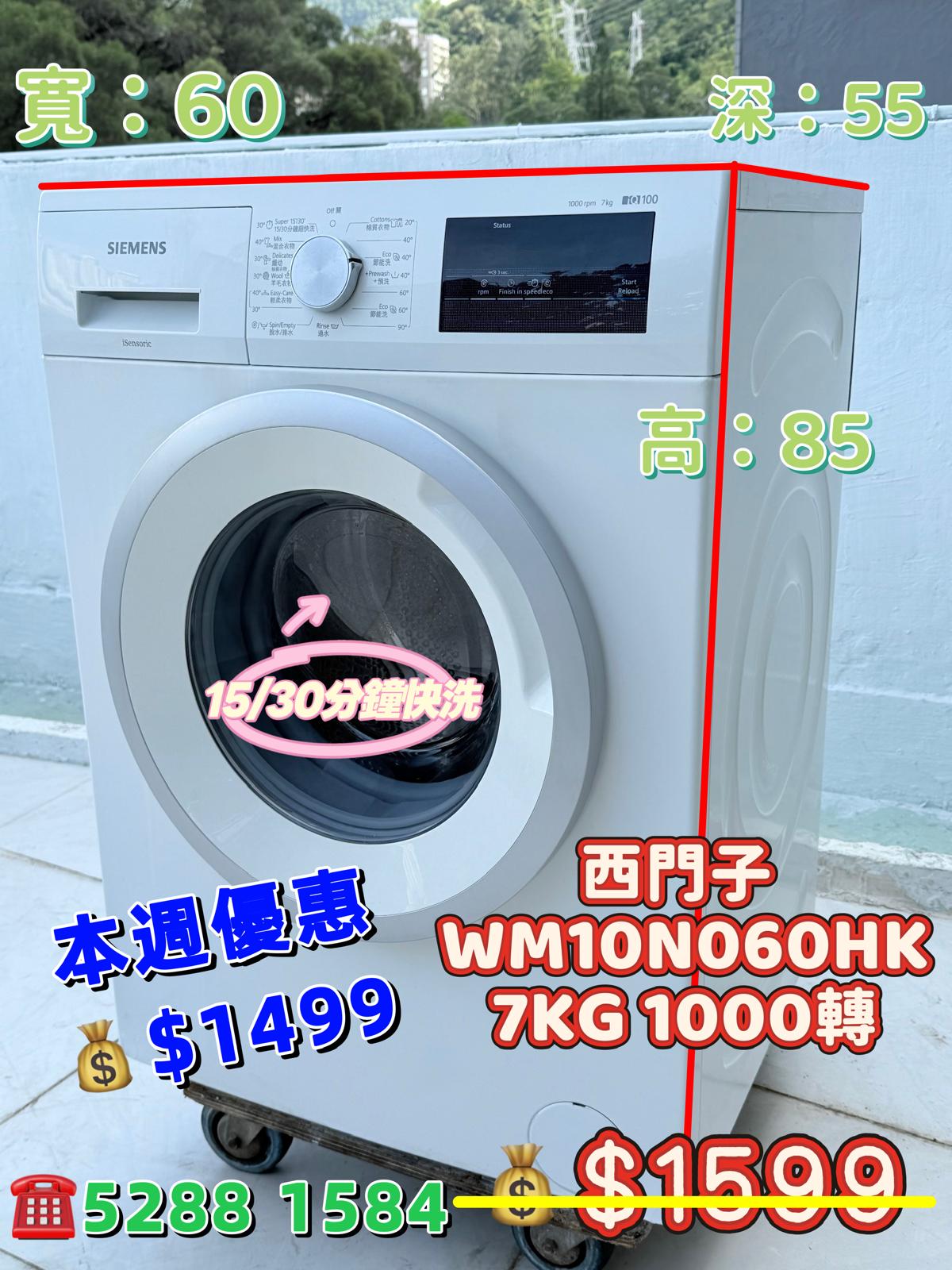 本週優惠 ♻️西門子 iQ100 WM10N060HK♻️ 7KG 1000轉 前置式洗衣機 九成新 包送貨安裝 有保用期 可貨到付款 信用卡付款