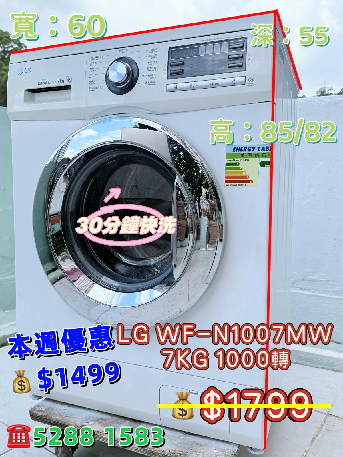 本週優惠 ♻️LG WF-N1007MW♻️ 7KG 1000轉 前置式妙手6重洗洗衣機 九成新 包送貨安裝 有保用期 可貨到付款 信用卡付款