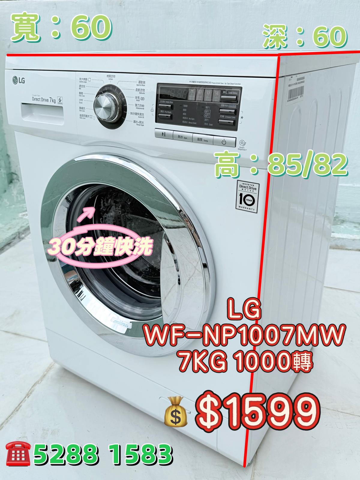 LG WF-NP1007MW 7KG 1000轉 前置式洗衣機 九成新 包送貨安裝 有保用期 可貨到付款 信用卡付款