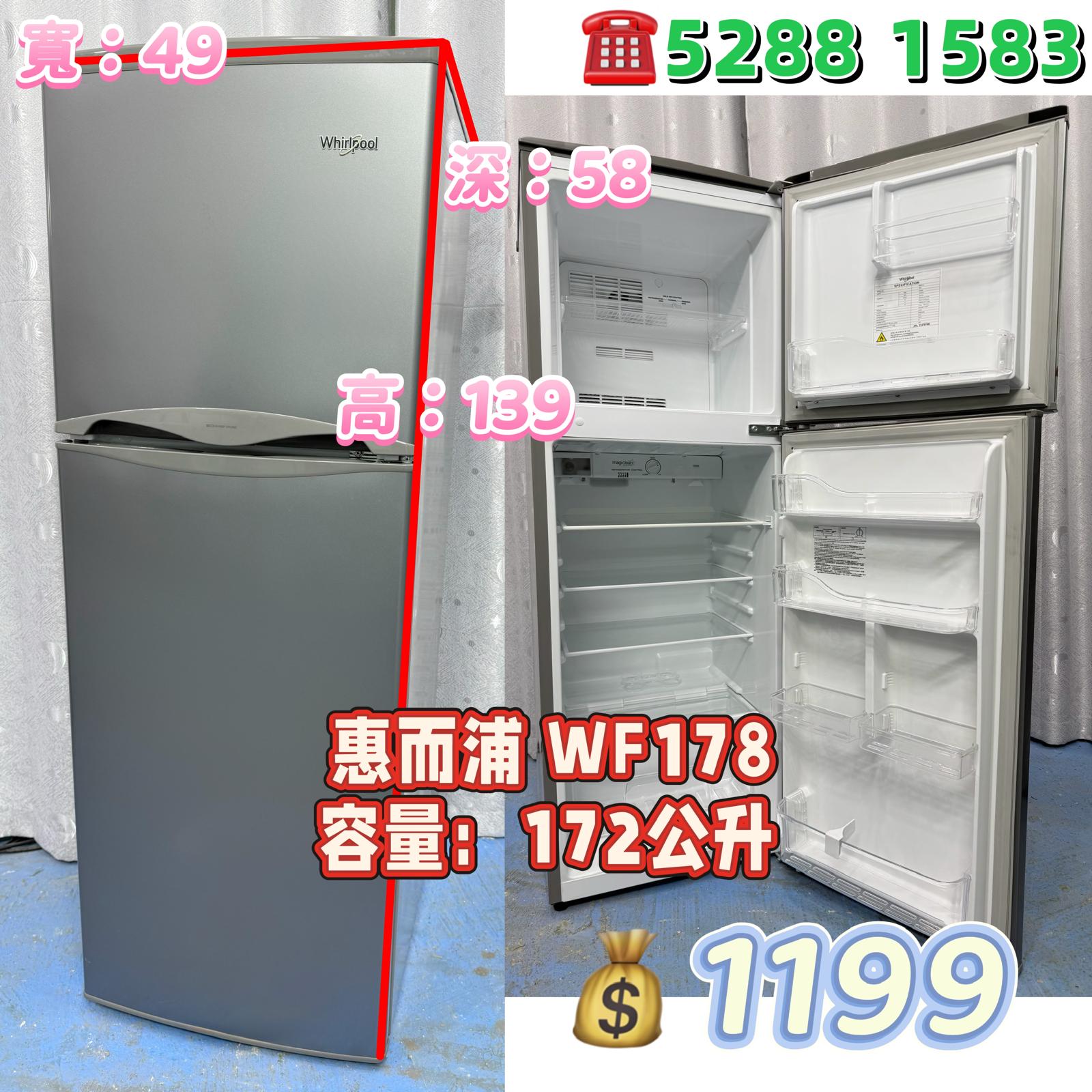 本週優惠 ❄️雪櫃 惠而浦WF2T321/3/4❄️ 雙門雪櫃 可左/右門鉸 九成新 包送貨安裝 有保用期 可貨到付款 信用卡付款