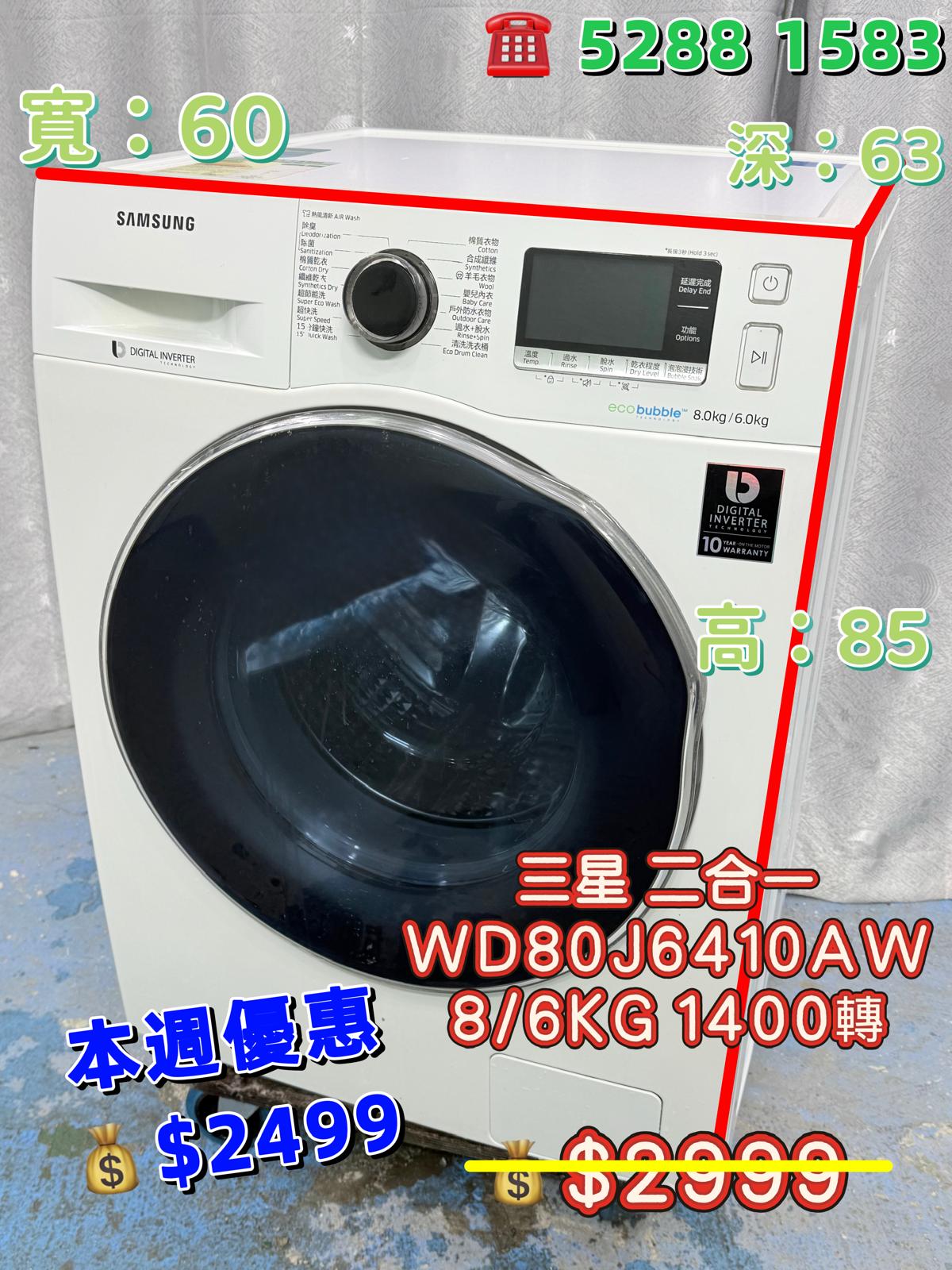容量:洗衣量 8KG 乾衣 6KG