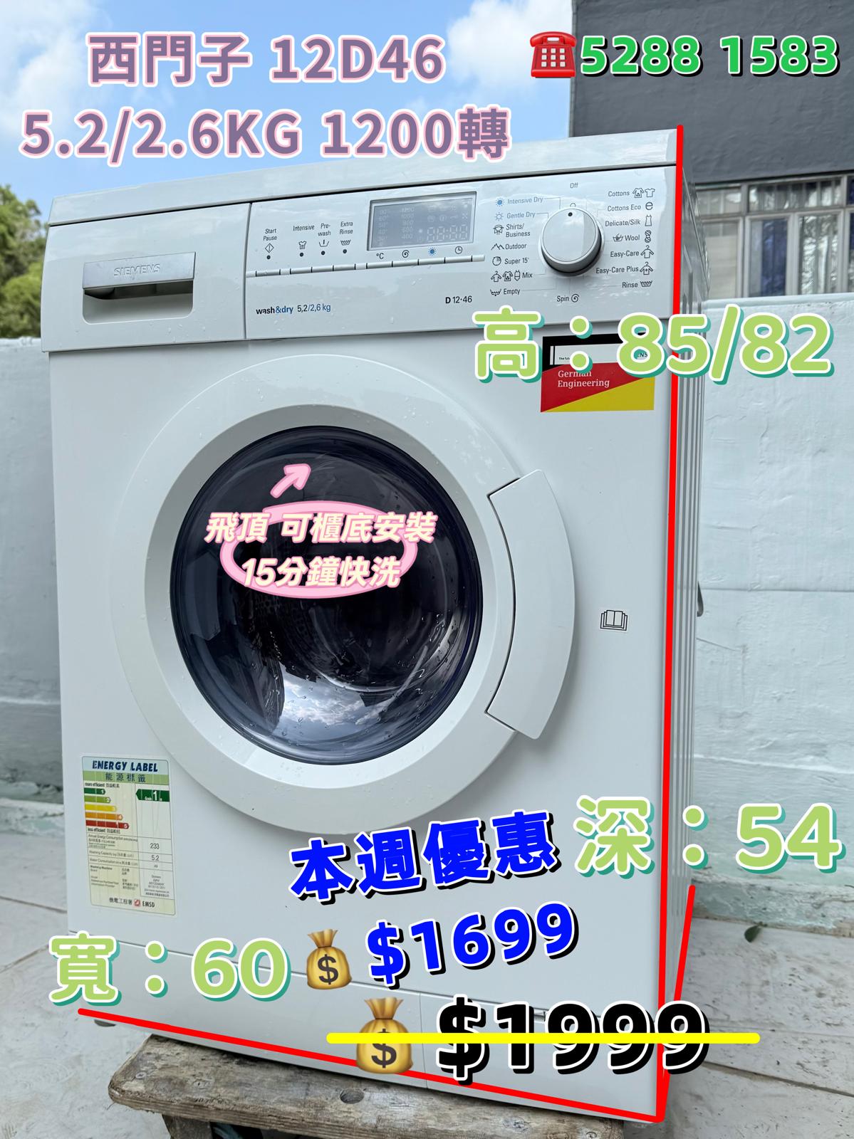 容量: 洗衣量 5.2KG 乾衣容量 2.6KG
